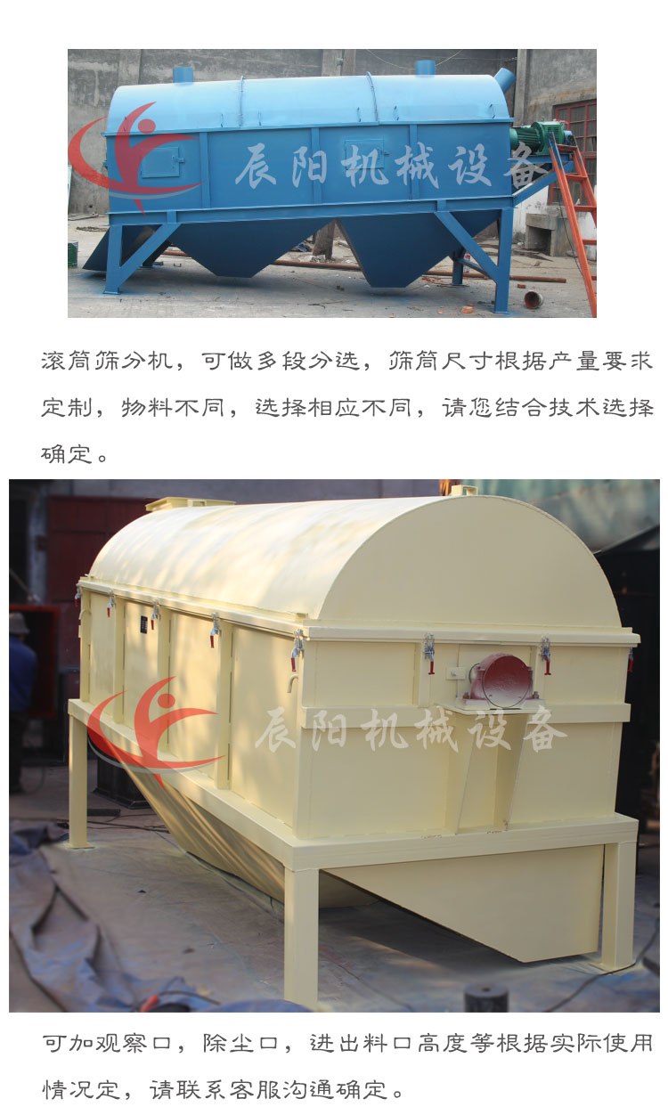 1 重型滾筒篩圓筒前端配有刮板,是物料更容易散;